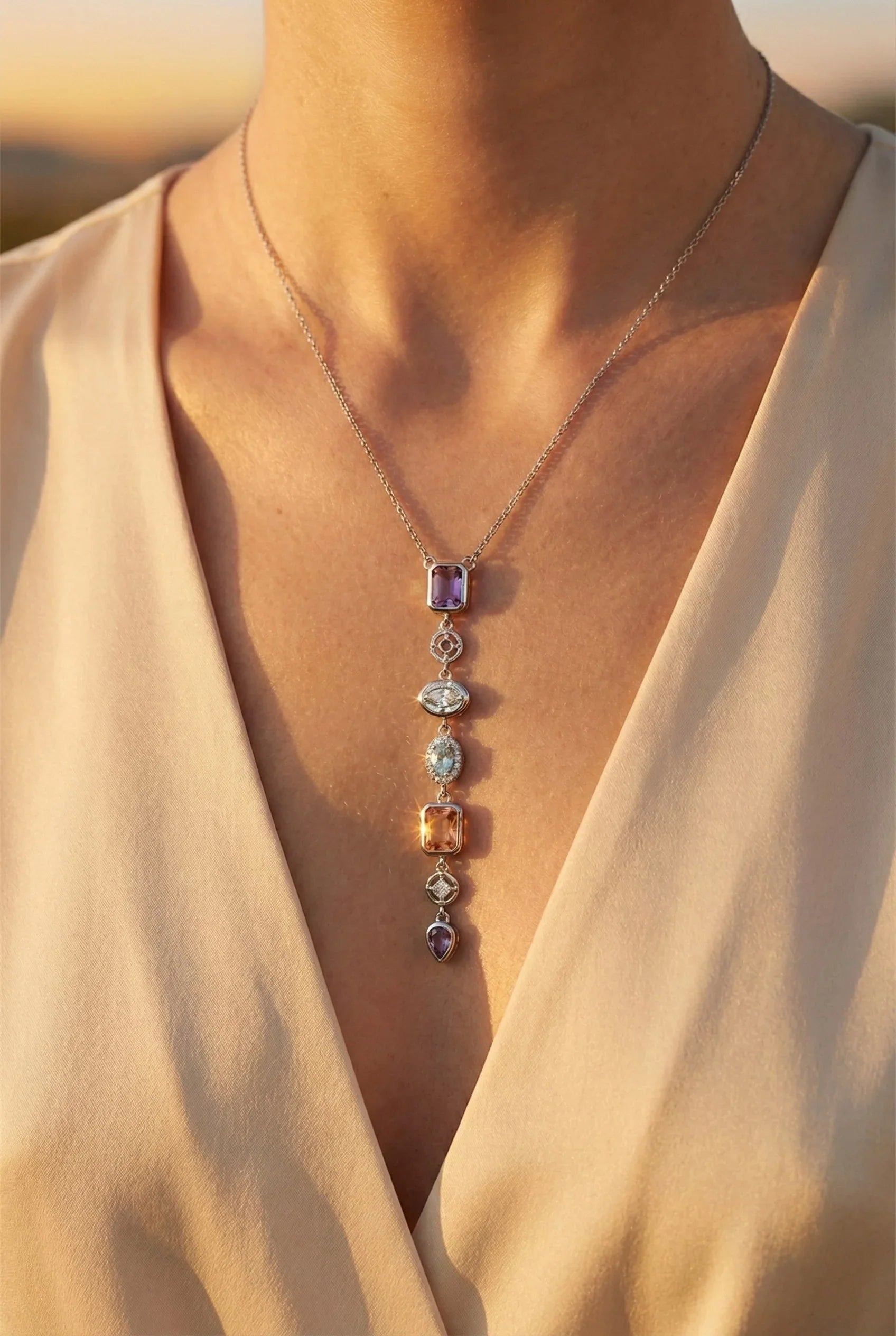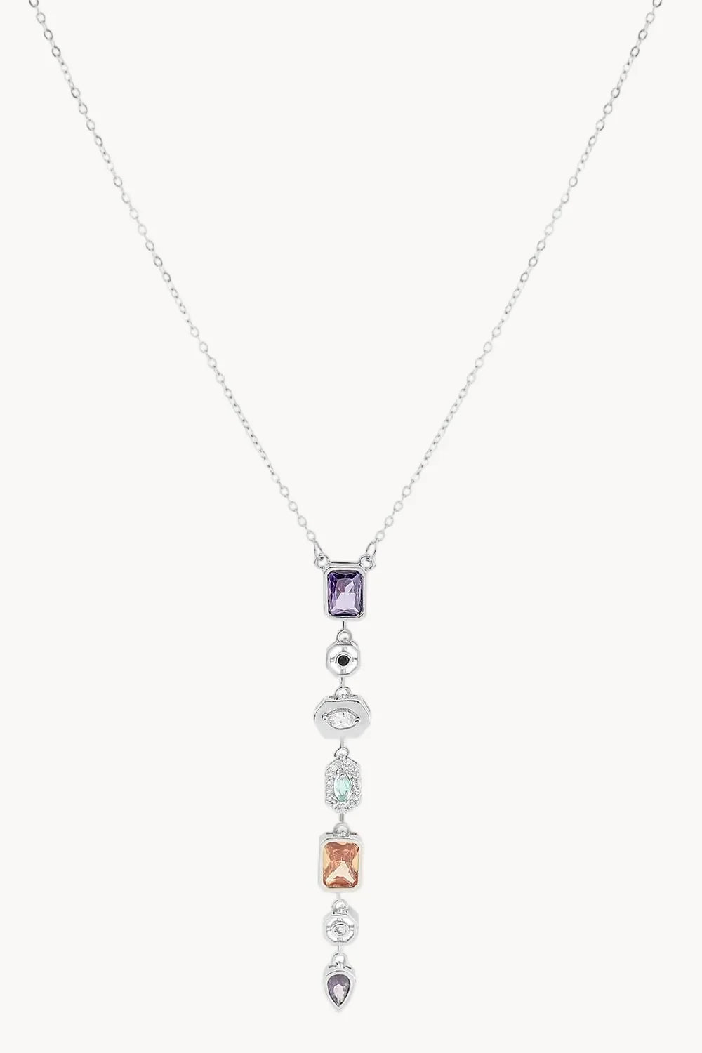 Rodyum Kaplama Masif Pirinç Gövde | Renkli Kristal & Zirkon İşleme | 40+5 cm Ayarlanabilir Zincir | 316L Çelik Bağlantı