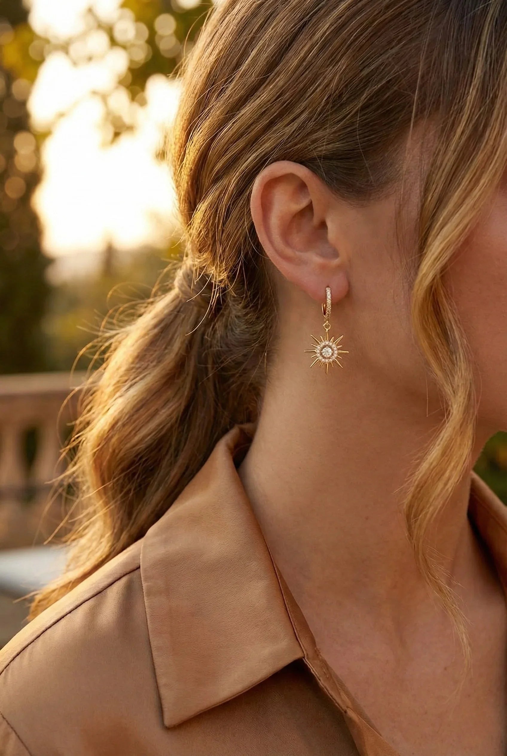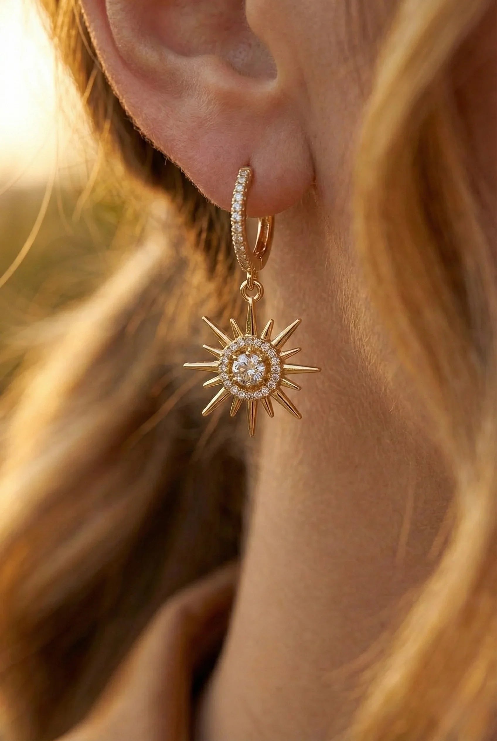 14K Altın Kaplama Masif Pirinç Gövde | Zirkon Taş İşleme | Güneş Formu